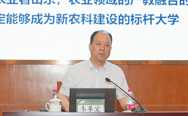 徐剑波在讲话中指出,建设一流农业大学,冲击双一流,是历史和时代赋予我们的光荣使命,是社会各界对学校发展的共同期望,也是全校师生聚力攻坚、翘首期盼的大事。徐剑波强调,一流的学科建设,必须有一流的党建领导,全力争创国家一流学科,奋力实现在省属高校中率先进入国家“双一流”建设行列的奋斗目标,就需要以政治建设为统领,加强党对学校工作的全面领导,增强“冲一流”建设决策力、领导力,保证“冲一流”建设始终沿着正确方向推进。扎根齐鲁大地,扛起强农兴农责任担当,要凝聚全校发展共识,深化综合改革,创新完善办学机制,着力破解“冲一流”建设的顽瘴痼疾,有效激发办学主体的积极性,实现办学资源高效利用。要强化原始创新驱动力,坚持“四个面向”,注重“顶天立地”,推进高水平、多学科、跨专业产学研协同创新平台建设,聚力开展有组织科研攻关,全力攻克“卡脖子”关键核心技术。要强化高端人才供给力,一体化推进人才、学科、专业、平台、项目建设,围绕学科方向汇聚人才、发展人才,完善人才激励和约束机制,扩大学院人才工作自主权。要强化乡村振兴支撑力,持续推进多方共建产业研究院等科教融合平台,实现人才链、教育链、产业链、创新链“四链”融合,创建“六打通”新型研发机构。各级干部要坚持不懈讲政治、抓学习、勇担当、守底线,在深入开展主题教育中扛起担当,高站位谋划、高起点启动、高标准推进“双一流”建设,全面打赢攻坚战,确保交出不负师生期望、不负历史使命的高质量发展新答卷。