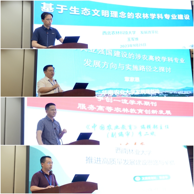 开幕式后,中国农业大学国家农业科技战略研究院院长高旺盛,华为云计算技术有限公司智慧农业顾问杜开发,中国农业大学校长助理、发展规划处处长曲瑛德作大会主旨报告。华中农业大学发展规划部部长王平祥、西北农林科技大学发展改革处副处长王军维、华南农业大学发展规划处处长章家恩、南京农业大学《中国农业教育》编辑部主任李二斌等专家代表作交流报告,分享交流高等农林教育的新理论、新方法、新探索,共同推动我国高等农林教育事业的高质量发展。