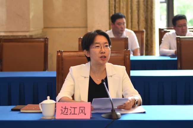 边江风介绍了沂源县果业有关情况,汇报了沂源实验室的合作共建进展。她表示,沂源与山东农业大学正式牵手,国家苹果工程技术研究中心沂源实验室签约落地,标志着双方合作迈进了新征程,开启了产学研融合助力果业高质量发展、塑强乡村振兴齐鲁样板淄博县域特色板块的创新实践之路。