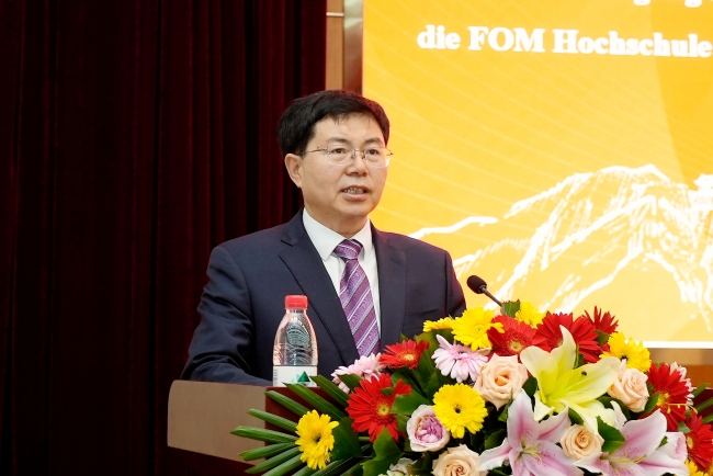 冷畅俭对山东农业大学与FOM大学友好合作办学二十周年表示祝贺,对成立德国校友组织表示祝福。他表示,双方合作的二十年是两校同舟共济扎实办学、专业建设提质增效、人才培养成果丰硕、对外开放激发动能、学校快速发展的二十年,希望山东农大与FOM大学再接再厉,携手奔向下一个金色二十年。