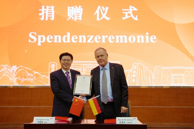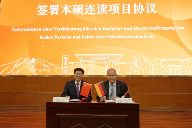 会议期间,冷畅俭与白潇乐共同签署《山东农业大学与德国埃森经济管理应用技术大学本硕连读协议》并进行捐赠仪式。校友会负责人宣读成立德国校友组织筹备委员会的通知。