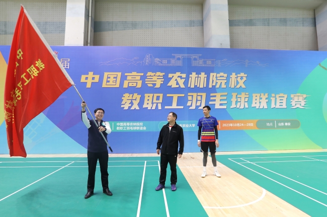 10月27日,第十一届中国高等农林院校教职工羽毛球联谊赛在山东农业大学岱宗校区体育馆落下帷幕。山东农业大学党委副书记、校长冷畅俭,山西农业大学党委书记廖允成,中国农业大学副校长钱学军,华中农业大学党委副书记、纪委书记廖济忠,海南大学副校长邱锡光,南京林业大学副校长缪子梅、赵剑锋,出席闭幕式,并为获奖代表队颁奖。山东农业大学党委副书记嵇景涛主持闭幕式。