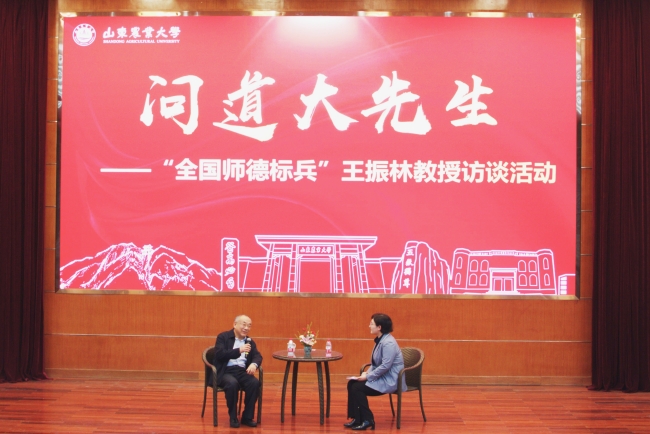 开班仪式上,全体新入职教师进行入职宣誓、签订《山东农业大学师德师风承诺书》,并为教师代表赠送《齐鲁时代楷模余松烈》。“全国师德标兵”王振林教授做客“问道大先生”访谈活动,为新入职教师答疑解惑。