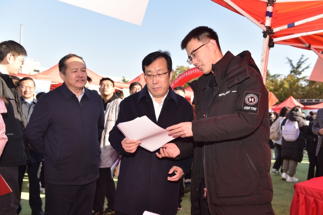 11月18日,“就选山东”2023年山东省高校毕业生省级集中招聘活动现代高效农业产业专场暨山东农业大学秋季校园双选会在泮河校区成功举办。学校党委书记徐剑波参加招聘活动,调研指导秋季毕业生就业工作开展情况。