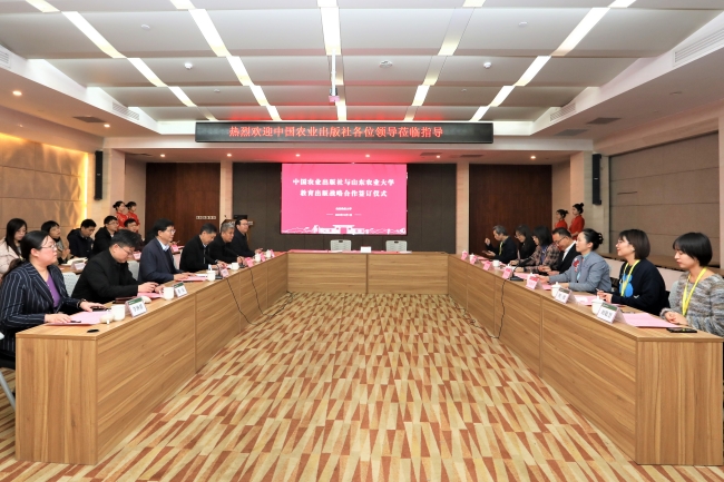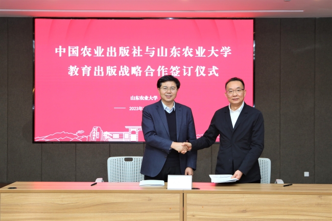 刘天金简要介绍了中国农业出版社的基本情况。他说,山东农业大学在117年的办学历程中,始终胸怀“国之大者”、扎根齐鲁大地,在卓越农林人才培养、农业产业科学研究、乡村振兴社会服务等方面作出了突出贡献、取得了丰硕成果。希望双方以此次合作为契机,构建信息交流、资源利用、选题开发、成果传播和出版服务新平台,不断提升服务高质量特色教材出版需求的水平,共同推动人才培养工作再上新台阶。