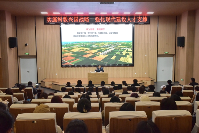 12月28日上午,党委书记徐剑波来到泮河校区西北片区,以“实施科教兴国战略 强化现代化建设人才支撑”为主题,在学术报告厅为师生代表上了一堂精彩纷呈的思政课,勉励大家树立远大理想,心怀“国之大者”,勇担立德树人强农兴农历史使命。
