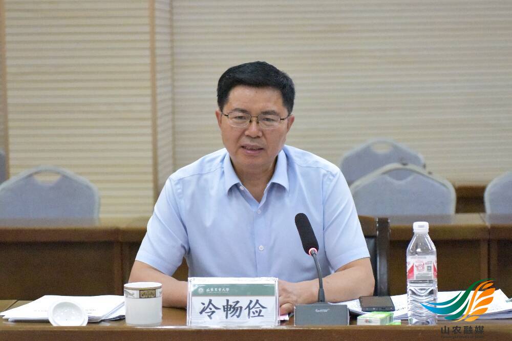 冷畅俭感谢民盟“811”项目调研专班一行对山东农业大学的关心和支持,他表示,学校的建设目标是在“双一流”建设中取得作物学学科一流突破,需要全校师生统一思想、形成共识、共同努力。冷畅俭向调研专班介绍了学校“一个目标、两把尺子、三个刻度”的发展战略:“一个目标”即将建成一流大学作为终极追求;“两把尺子”分别代表学校的教育理念和社会责任,一是以立德树人作为根本任务,二是以服务国家作为最高追求,两者相辅相成,共同推动学校的发展;“三个刻度”则具体阐述了学校发展的三个维度,即“顶天”即在人才培养和科学研究方面力争达到国际领先水平,“立地”即紧密结合国家战略和乡村振兴,发挥学校在山东农业大省的优势,为地方经济社会发展作出贡献,“国际化”即提升学校的社会评价和影响力,乃至国际影响力。