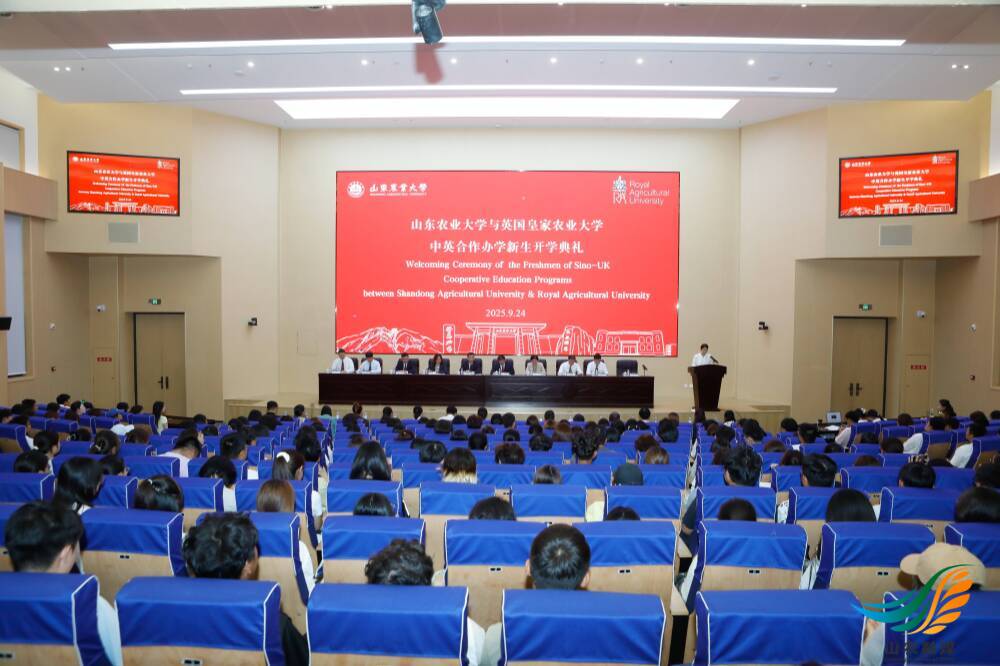山农融媒9月28日讯 9月24日下午,山东农业大学与英国皇家农业大学合作办学2025级新生开学典礼在泮河校区举行。学校副校长林海出席典礼并讲话,英国皇家农业大学校长彼得·麦卡弗里通过线上出席典礼并致辞。