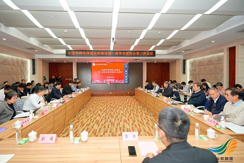 山农融媒12月1日讯 11月29日,小麦育种全国重点实验室第一届学术委员会第三次会议在我校召开。会议采用线上线下相结合的方式举行,学术委员会委员中国工程院陈温福院士(线上)、张洪程院士、李培武院士(线上),中国科学院种康院士、杨维才院士(线上),王道文教授(线上)、马有志研究员、吉万全教授(线上)、姜东教授、倪中福教授,特邀专家河南农业大学陈锋教授、青岛农业大学马武军教授出席活动。山东农业大学党委副书记、校长冷畅俭出席活动并讲话,学校党委委员、副校长王勇主持活动。
